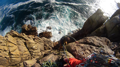 obbiettivo. Per scendere alla base della scogliera ci caliamo con una