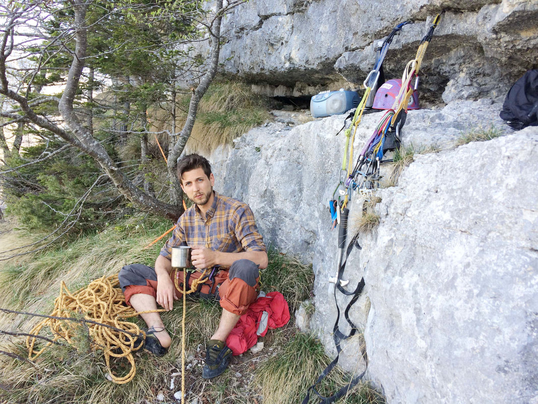 I protagonisti di questa storia, Marco ed io, sentivamo già da tempo la chiamata di quella parete strapiombante, ma a causa degli inevitabili impicci della vita quotidiana, abbiamo dovuto aspettare fino ad aprile per trasformare quel sogno in realtà. E così, con il suono della sveglia e la pioggia leggera che cadeva, siamo usciti dalle nostre case carichi di zaini, attrezzature e di un vecchio stereo, pronto a farci compagnia lungo il percorso.